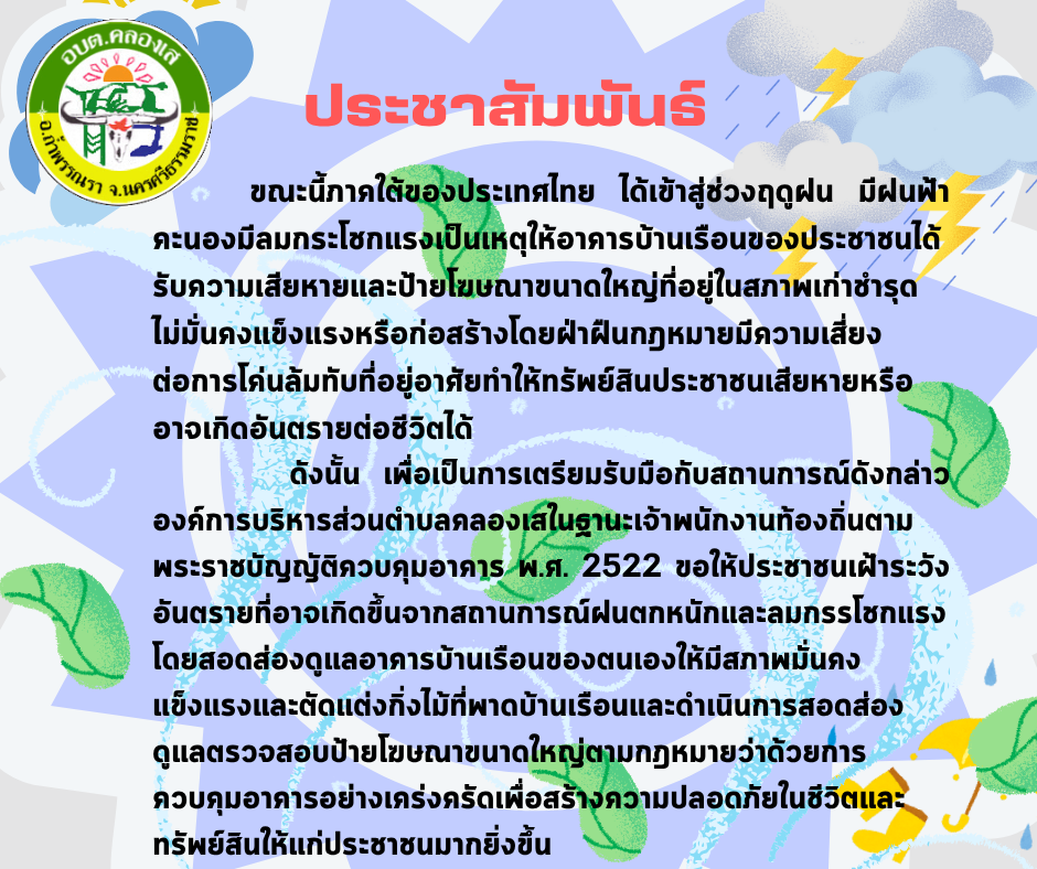 ประกาศองค์การบริหารส่วนตำบลคลองเส เรื่อง รับสมัครอาสาสมัครบริบาลท้องถิ่นเพิ่มเติม |